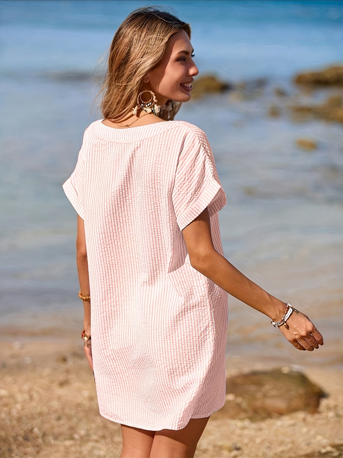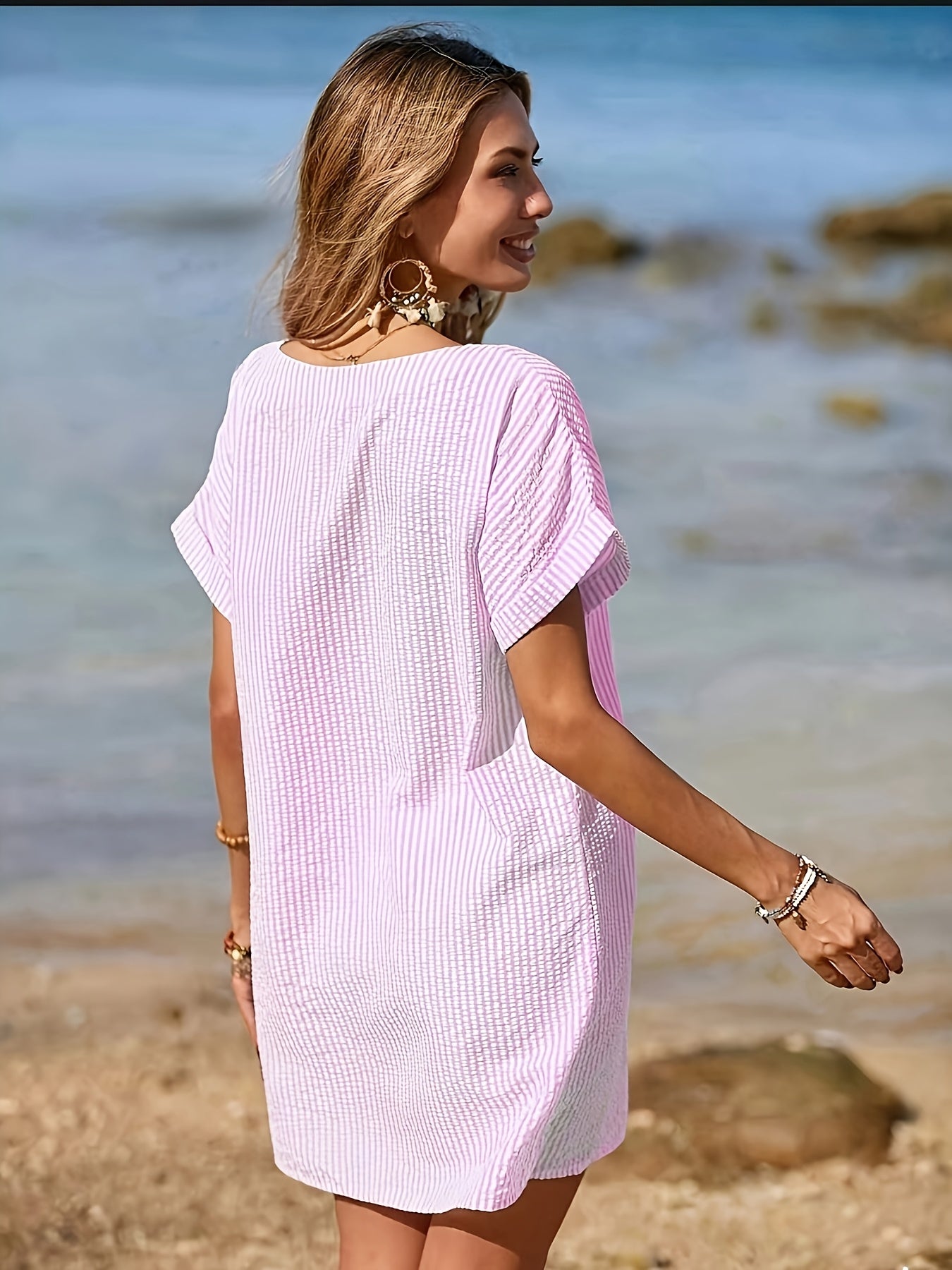 Alva Lett Stripet Sommerkjole med V-Hals | Stil & Komfort – La Fichel