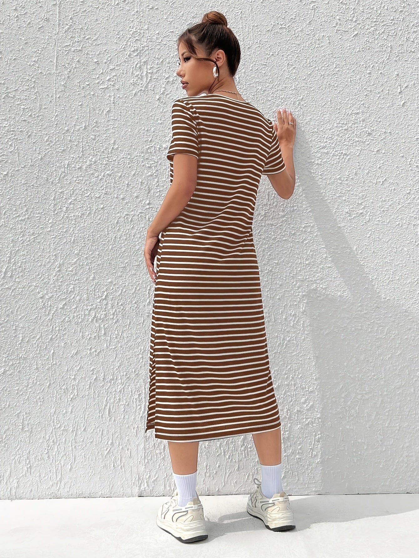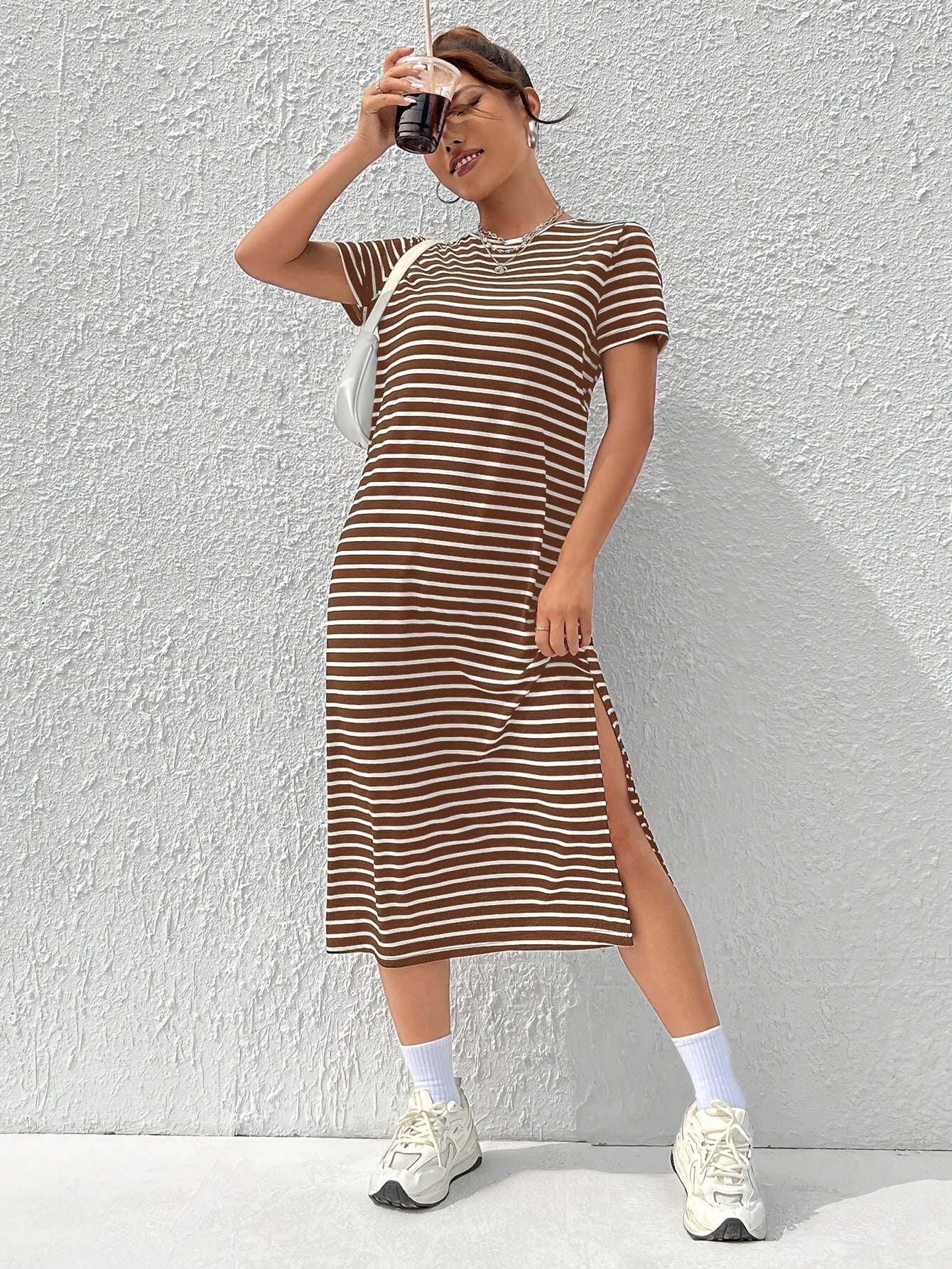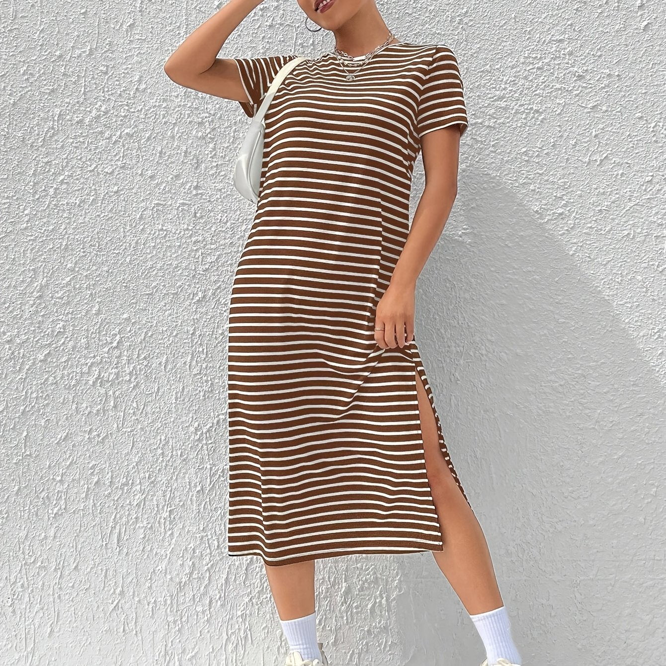 Linnea Stripete T-skjortekjole med Splitt - Stilig og Allsidig – La Fichel